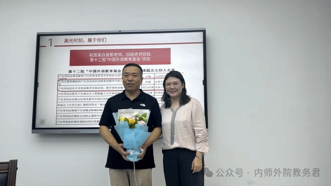 在获奖教师经验交流研讨环节,吴白音那教授分享了他成功获批“第十二批中国外语教育基金项目”的宝贵经验。吴教授详细介绍了该项目的申报背景、组织结构及招标程序,并结合自身课题申报经验,分享了如何挖掘创新性研究选题及撰写申报书的技巧。他鼓励教师们关注外语学科研究前沿,养成阅读文献的习惯,以提高教学效率和专业素养。