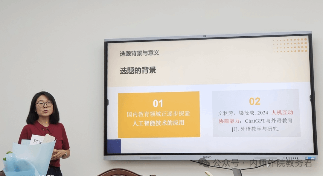 田超老师就获批“第十二批中国教育基金项目”和参加2024年“外研社杯”教学之星大赛的参赛经验进行交流。田老师阐述了中标项目的立项背景及其研究进展,探讨了人工智能在外语教学中的应用及研究趋势。此外,田老师总结了参加“外研社杯”教学之星大赛初赛、复赛和决赛的参赛历程,分享了备赛收获与反思,为今后计划参赛的教师提供了宝贵的经验。