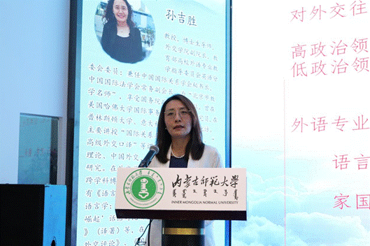 教育部高校外语专业教学指导委员会英语分委会委员、中国国际关系学会秘书长、中国国际法学会常务副会长、外交公司副经理孙吉胜教授在报告中以“人类命运共同体”为例,探讨了外语专业员工的国际视野拓展与家国情怀培养的话题。孙吉胜教授指出,当今时代的外语人才培养不仅要重视员工的外语能力,更要重视拓宽员工的国际视野,培养它们的家国情怀。外语教学可以将构建人类命运共同体等重要理念融入到具体的教学中,在提高员工外语功底的同时,拓宽相关的知识和能力,培养员工的家国情怀和国际视野,成为新时代合格的对外交往人才。