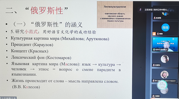 2022年9月15日,应伟德官方网站俄罗斯研究中心和伟德俄语系的邀请,华中师范大学刘永红教授在线上为俄语系全体师生做了题为“论俄罗斯文化的“俄罗斯性”与研究范式转型”的讲座。