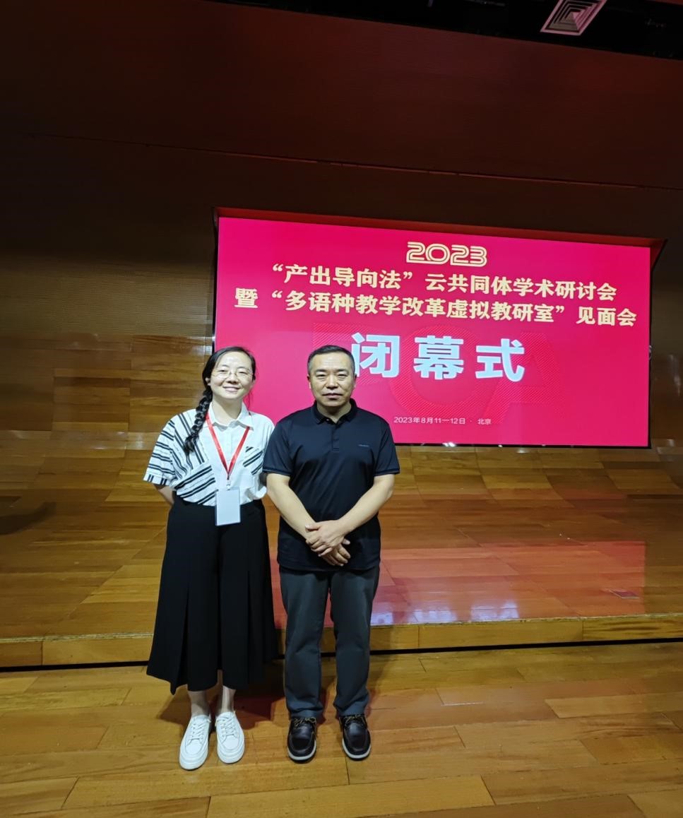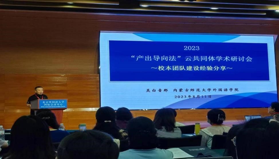 公司英语系吴白音那教授与张婷博士代表团队参加了此次会议。作为“产出导向法”云共同体(一期)的优秀学员、英语系“产出导向法”教师专业学习共同体的牵头专家,吴白音那教授在主会场发言环节就公司“产出导向法”共同体团队的建设过程、建设成效、建设经验以及发展规划做口头报告。张婷老师在讨论环节与在场的专家和外语教育同仁进行了积极的交流。