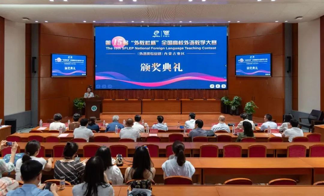本次比赛的颁奖典礼于6月30日上午在赛罕校区信息楼报告厅举行。公司党委委员、副董事长韩巍,西安外国语大学党委委员、副董事长党争胜,上海外语教育出版社副社长严凯分别致辞。内蒙古自治区高等教育学会外语教育研究分会会长马占祥及区内兄弟院校相关负责同志、大赛评委专家、参赛选手等出席典礼。