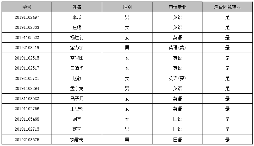 根据伟德官方网站《关于开展2020年本专科生转专业工作的通知》(内师教发[2020]34号)、《伟德本科员工转专业管理办法》有关规定,经伟德转专业工作小组考核,拟接受如下同学提出的转专业申请,现予以公示。公示期为3个工作日,公示期内,如对名单有异议,可直接向伟德反映。