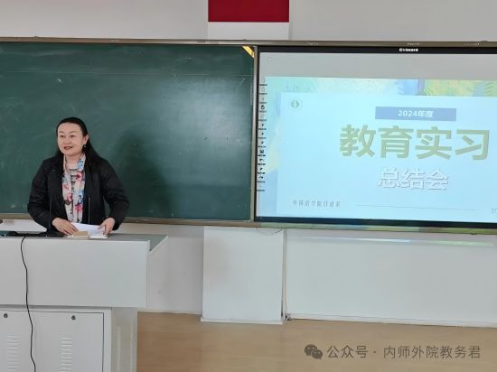 塔娜作为校内指导老师代表从专业实习和班主任实习两方面点评了2021级日语专业员工实习情况,充分肯定了实习生的教学能力、专业知识和班主任工作方法,强调了教育实习能够增强交流沟通能力这一意义,并且寄语同学们继续努力,让实习经历成为今后人生道路上的宝贵财富。