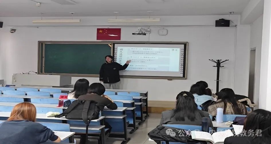 2024年10月31日,日语系举办师范生教学技能竞赛的初赛选拔。由日语系阿拉木斯、高娃、于泳老师担任评委,从教学设计、教学内容、课件制作三个方面对参赛的7名选手进行打分,最终推荐沈奕含和乌仁图雅进入下一阶段的比赛。