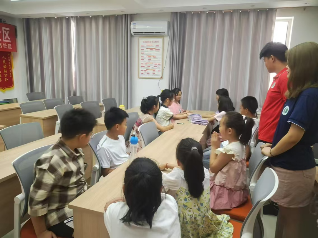 假期多数孩子留了制作手抄报的作业,炎炎夏日里志愿者们以夏天作为主题,引导孩子们布局手抄报版面,在趣味作画的同时完成了部分作业。