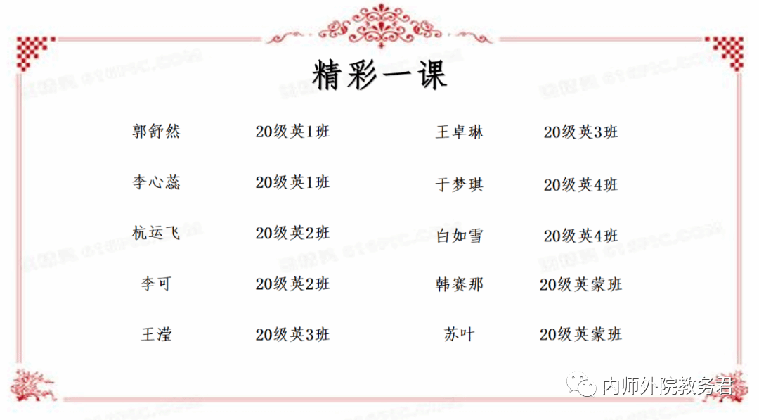 本次实习总结会也收到了鄂尔多斯市第一中学伊金霍洛分校英语教研组长刘瑞玲老师对实习生的点评,她充分肯定了实习生的工作能力以及学习热情,并期待各位实习生有一个光明的就业前景。