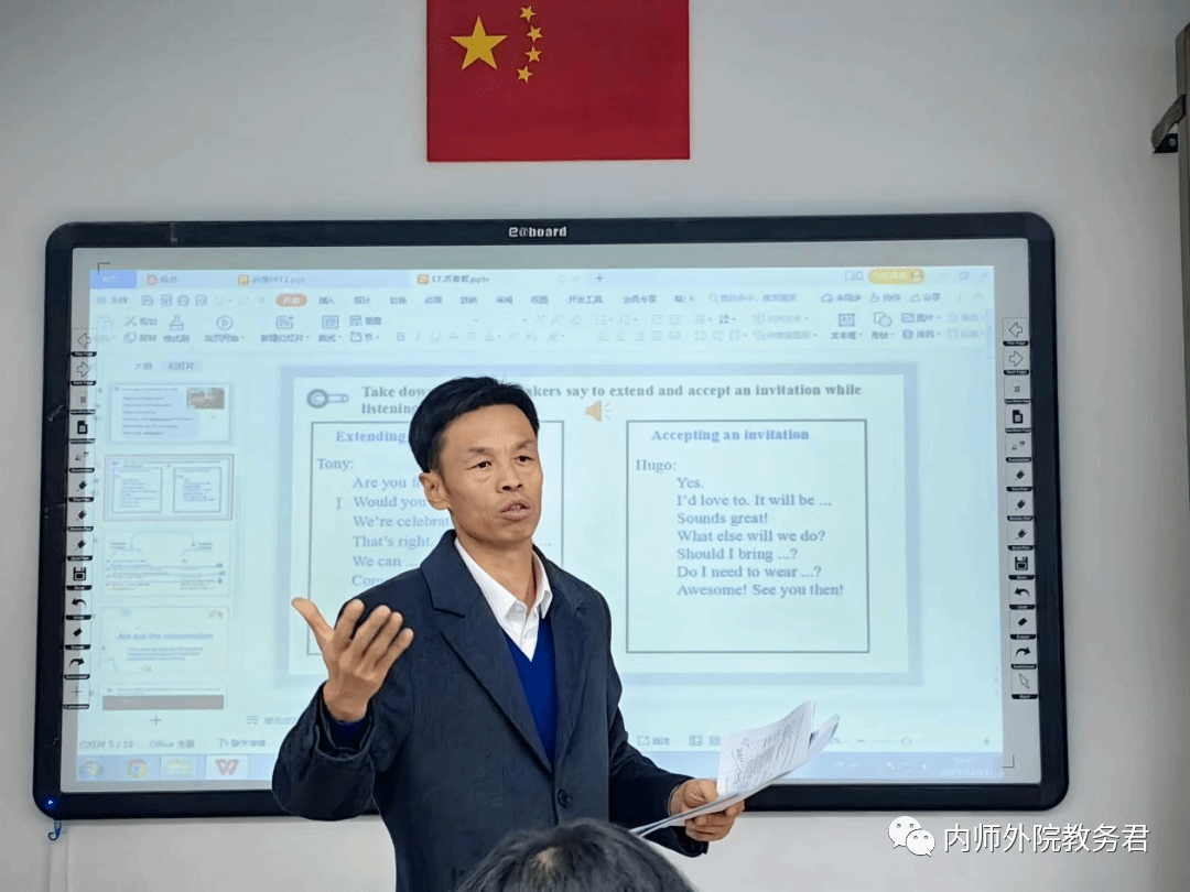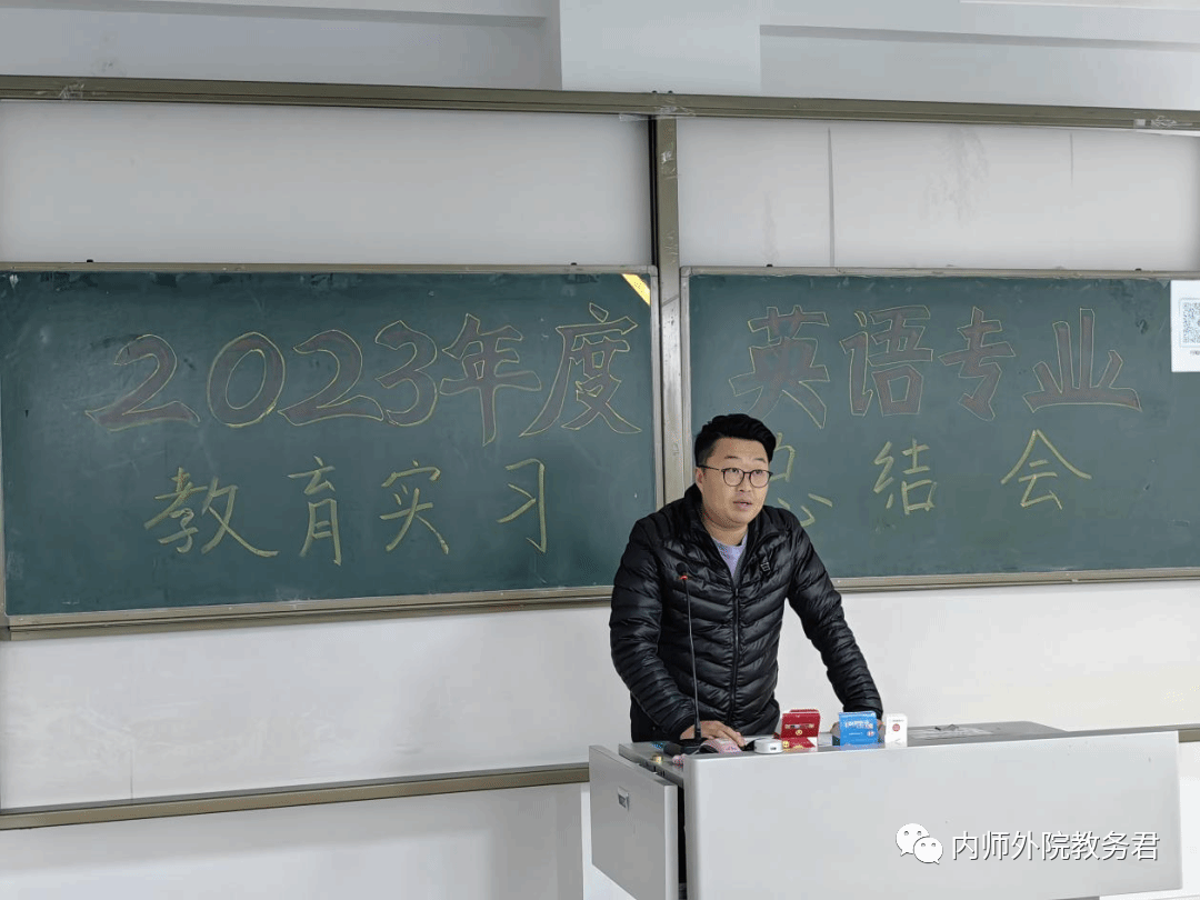 阿力更老师首先介绍了2023年英语(师范)专业教育实习的基本情况:本次教育实习由20级英语(师范)方向的153位同学参加,实习周期为8周,校内指导教师34人,校外指导教师166人,实习基地校分布于区内11盟市和北京市。实习期间,我系教师吴晓春、郭玺平、呼和塔拉、阿力更等教师还走访了伟德官方网站附属公司和赤峰地区十余所中小学,多方面、多维度地了解实习生的实际表现,同时也收到了实习基地校领导和实习指导教师对我系实习生的高度评价。在本次教育实习中,实习生们顺利地完成了本次实习任务,在教学能力、口头表达、人际沟通等方面得到了锻炼和提高,本次教育实习圆满完成。